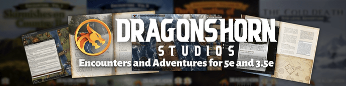 Dragonshorn Tales delivers fully realized adventures built for Foundry VTT, with rich content for both D&D 3.5e and 5e. Their catalog includes dozens of ready-to-run modules — complete with maps, encounters, and narrative hooks to drop straight into your campaign.