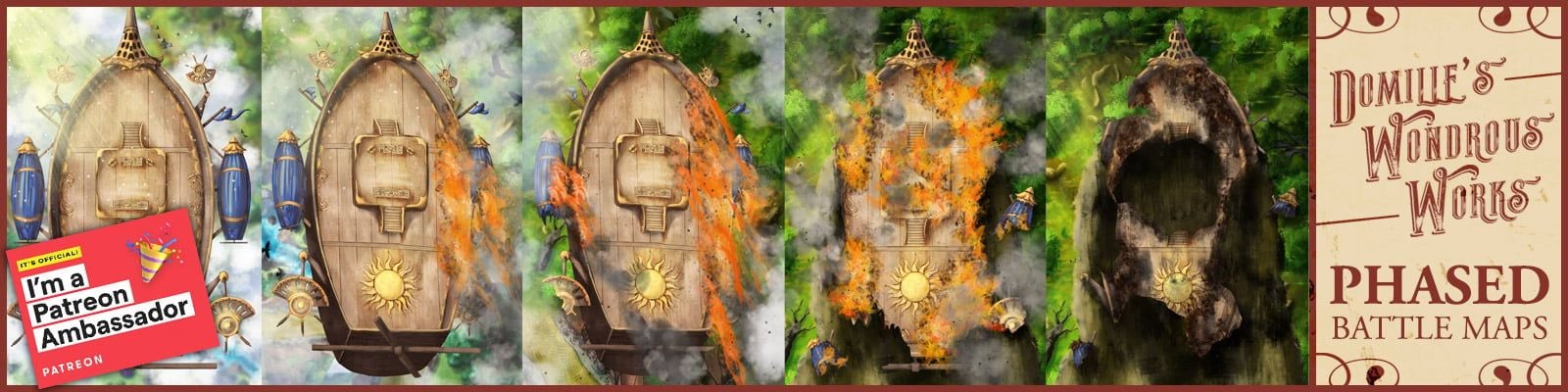 Domille’s Wondrous Works crafts beautifully hand-drawn battlemaps designed to spark imagination and enhance every encounter. Each map is rich with detail, offering phased and dynamic variations that make your stories come alive.